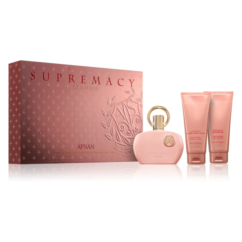 Supremacy Pink by Afnan is a sophisticated and elegant floral-fruity fragrance designed for women. It opens with a soft blend of bergamot, freesia, and apple blossom, leading into a rich heart of jasmine, rose, and gardenia. The base is warm and sensual, with creamy vanilla, patchouli, and soft musk, making it both inviting and long-lasting.