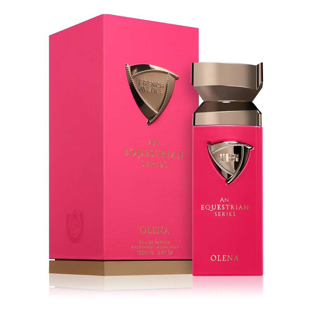 French Avenue An Equestrian Olena is a refined and powerful fragrance that embodies strength, grace, and timeless elegance—like a gallop through a golden countryside. It opens with fresh, crisp notes of bergamot and green leaves, instantly invigorating and clean. As the scent unfolds, a heart of delicate florals and subtle spices adds depth and femininity. The base settles into a smooth blend of leather, woods, and musk, evoking the essence of fine saddles and polished tradition.