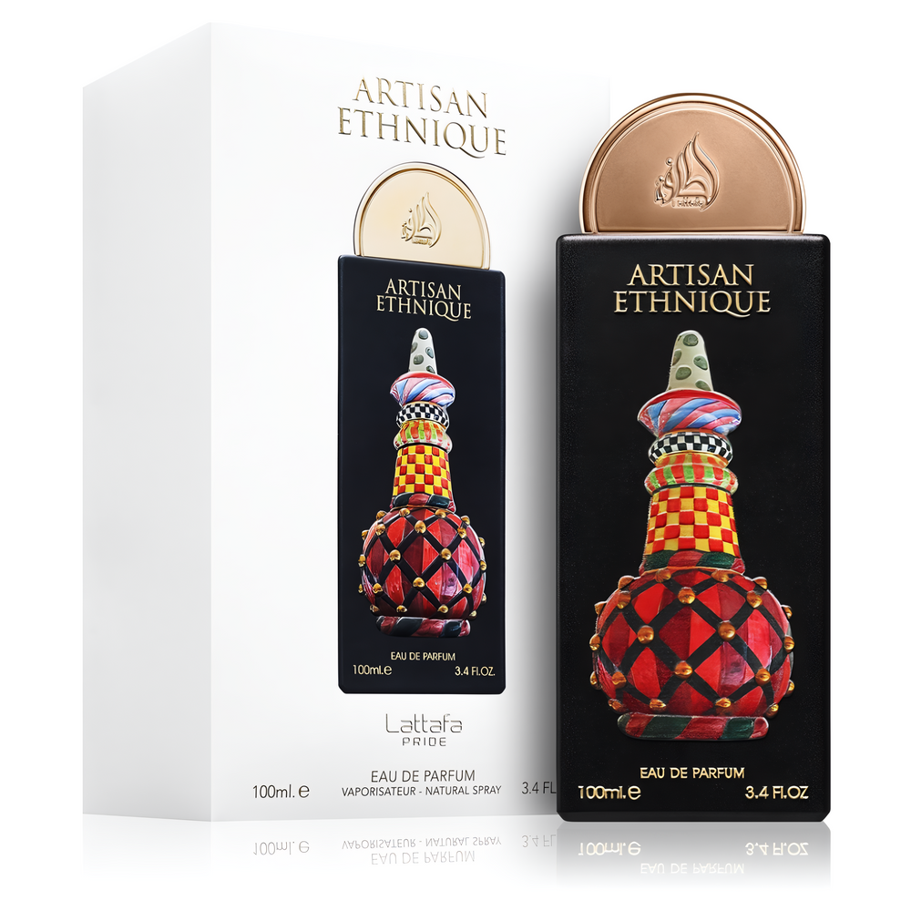 Artisan Ethnique is an olfactory experience that blends warm and gourmand flavors with elegant and woody tones. The top notes open with the warm intensity of rum and cinnamon, softly wrapped in a touch of sugar, creating an irresistibly enveloping and spicy start. The heart of the perfume explores rich gourmand nuances with caramel, coffee and cocoa, balanced by oak moss, which adds an earthy and sophisticated depth.