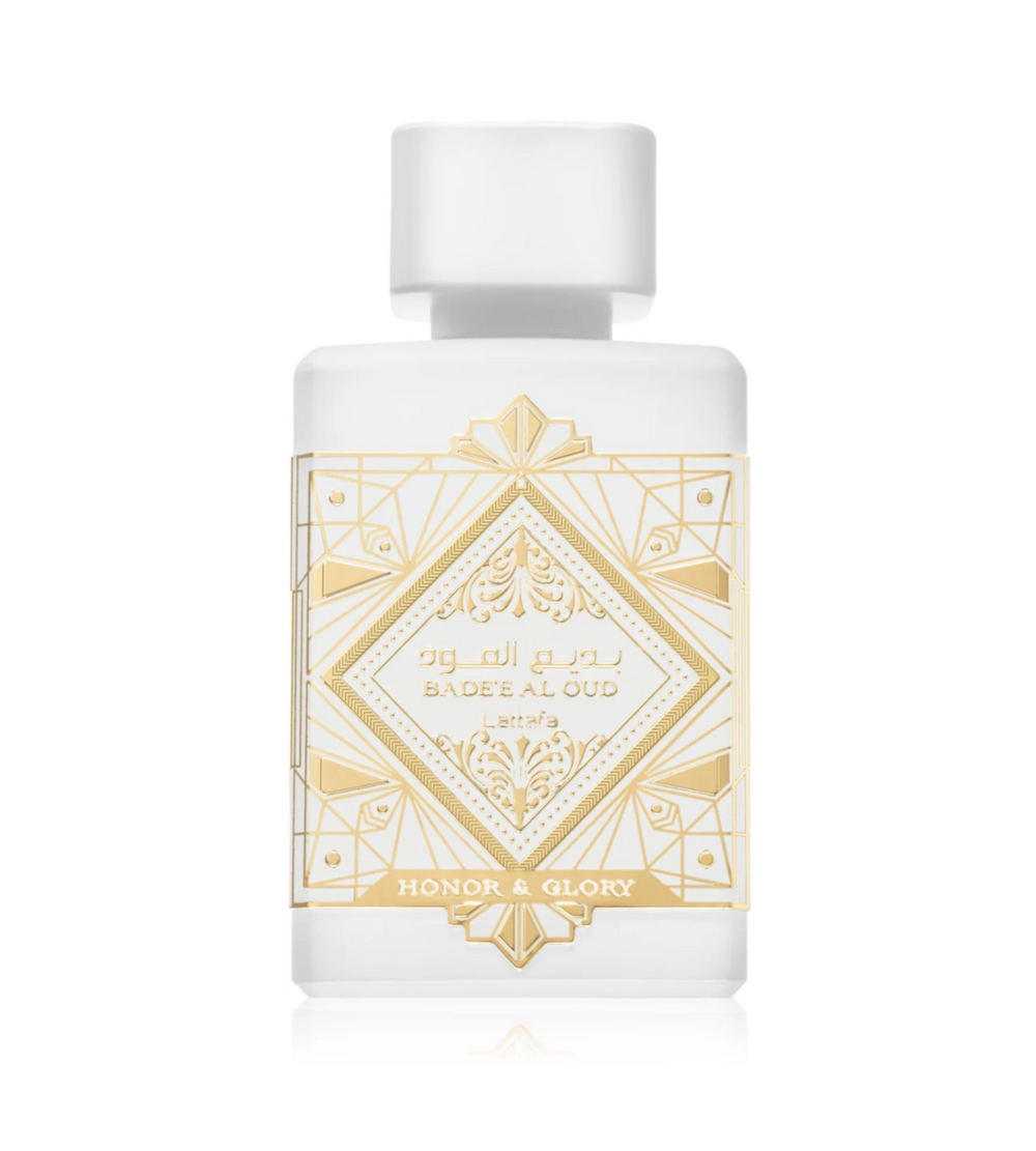 Bade'e Al Oud Honor & Glory by Lattafa Perfumes is a fragrance for women and men. This is a new fragrance. Bade'e Al Oud Honor & Glory was launched in 2023.