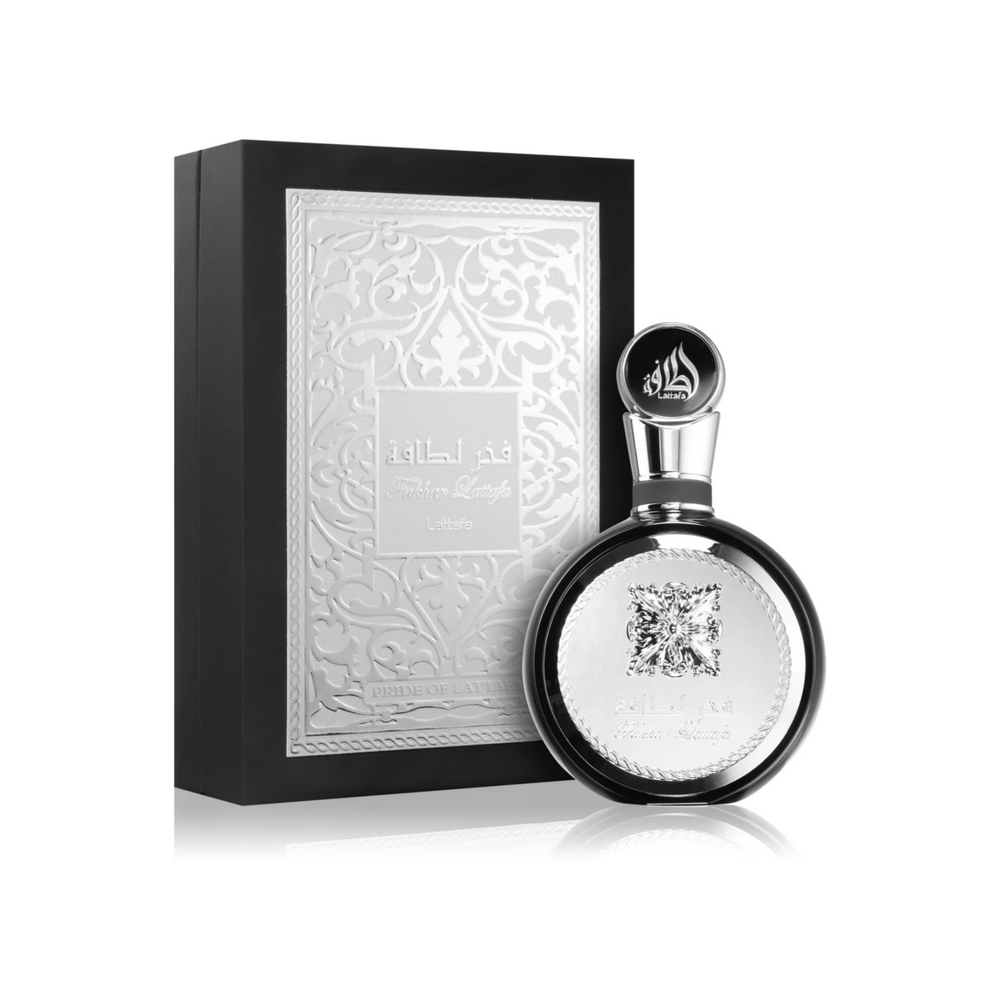 Fakher Lattafa highlights a fougere - woody union along with elegant notes of violet leaf, masculine nutmeg and bergamot. The heart accentuates clary sage, tart geranium and orange blossom finely spiced with coriander, while tonka, patchouli, vanilla and sandalwood linger in trail, which attract our attention with strong creamy shades.