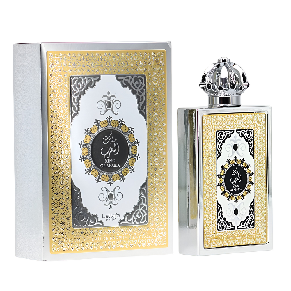 King of Arabia is a bold, spicy‑woody fragrance designed for confident, charismatic men. It opens fresh and citrusy with bergamot and lemon, then warms up with aromatic lavender and spicy cinnamon. The heart brings floral hints from jasmine and geranium, while the base settles into a rich, earthy blend of patchouli, cedarwood, amber, and musk. It’s regal, masculine, and perfect for evening wear or cooler weather.