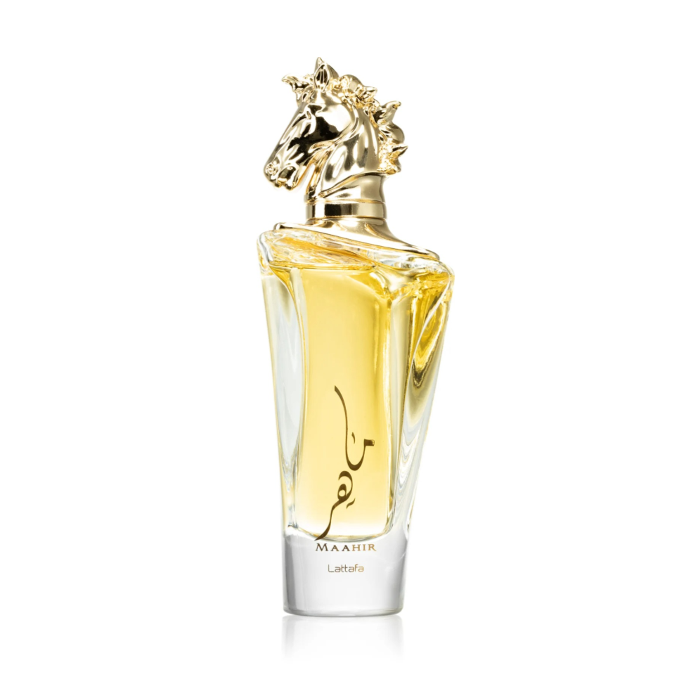 Maahir by Lattafa Perfumes is a Amber Floral fragrance for women and men. Maahir was launched in 2020. Top notes are Red Berries, Peach and Bergamot; middle notes are Jasmine, Peony and Red Lily; base notes are Sandalwood, Vanilla Flower and Musk.