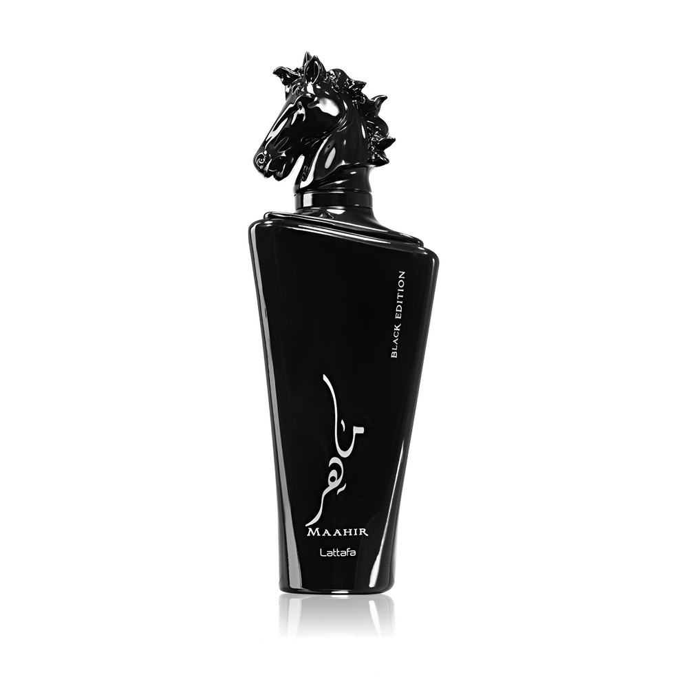 Maahir Black Edition by Lattafa Perfumes is a Amber Spicy fragrance for women and men. Maahir Black Edition was launched in 2019. Top notes are Black Pepper, Pink Pepper and Saffron; middle notes are Labdanum, Cade oil, Gurjan balsam and Rhubarb; base notes are Leather, Cedar, Patchouli, Guaiac Wood, Musk and Moss.