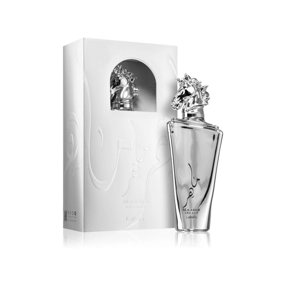Maahir Legacy by Lattafa Perfumes is a fragrance for men. Top notes are Lime, Mint, Grapefruit, Lavender and Pineapple; middle notes are juniper berry, Black Pepper, Rosemary, Geranium and Frankincense; base notes are Ambroxan, Oakmoss, Vetiver, Cashmeran and Tonka Bean.
