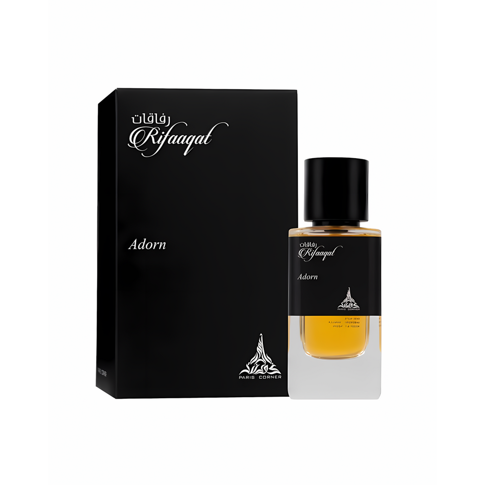 Rifaaqat Adorn is a delightful fragrance that starts off with a lively mix of pink pepper, coriander, tangerine, and violet, setting the stage for a refreshing and energizing experience. The heart notes bring out a chic blend of cedar, patchouli, and tree moss, adding depth and a touch of earthy sophistication. As for the base notes, ambergris, vanilla, woody tones, and benzoin create a warm and sensual base, making Rifaaqat Adorn a versatile and long-lasting scent suitable for any occasion.